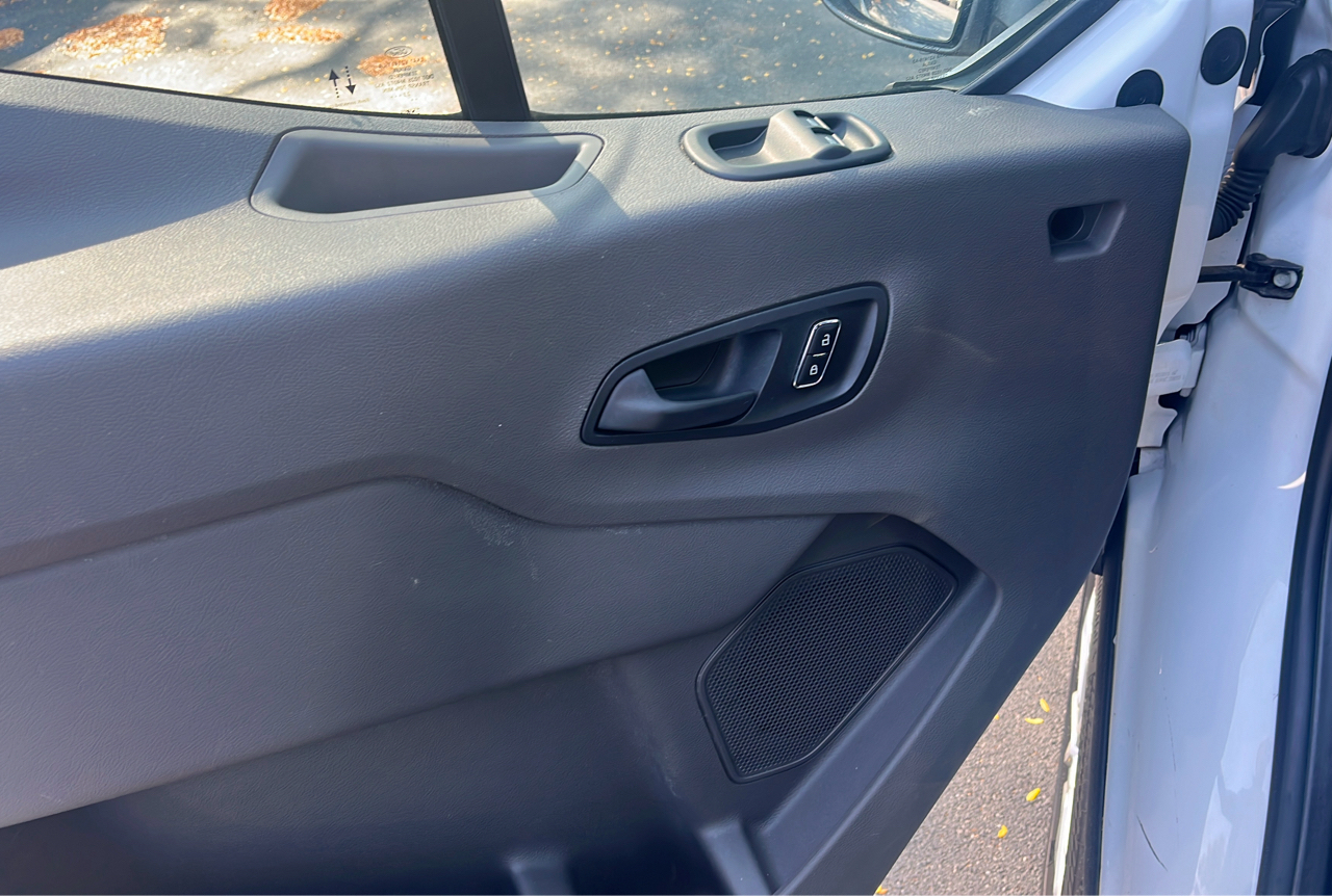 The interior of this Transit Cargo Van is designed for comfort and convenience, with a 4-way driver seat, manual tilt/telescoping steering column, and front cupholder for your morning coffee. You'll also enjoy the ease of power windows with driver 1-touch down and streaming audio to keep you entertained on the road.